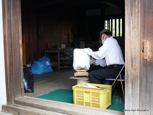↑這位大叔在幹嘛?他在將遊客使用完畢的塑膠袋(入內參觀都要脫鞋,因此準備了手提袋讓遊客使用)仔細擦拭回收使用!