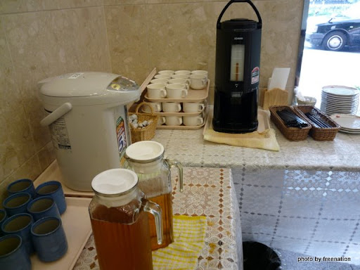 20吋液晶電視、微波電水壺、吹風機(非獨立式,比較不方便),免費茶包,電球型日光燈。冰箱是空的,沒有飲料。