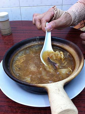 我們點了「雞絲竹笙碗仔翅」兩碗(右下圖),「豪華碗仔翅」兩碗(右上圖),「招牌花膠海參煲仔翅」一碗(左圖)。