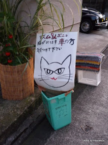 貓咪不怎麼怕人,就這樣被拴在門前,跟台灣的貓咪很不同。